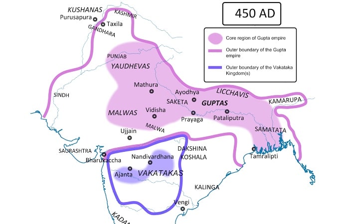 - Chandragupta II also exercised indirect control over the Vakataka kingdom.